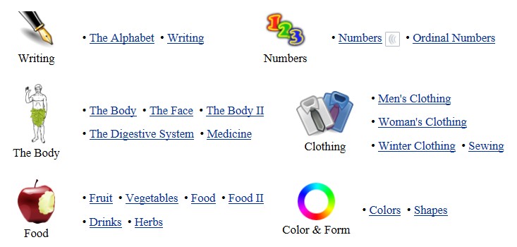 | Clothes (a-e) | Clothes (g-q) | Clothes (r-z) | |||